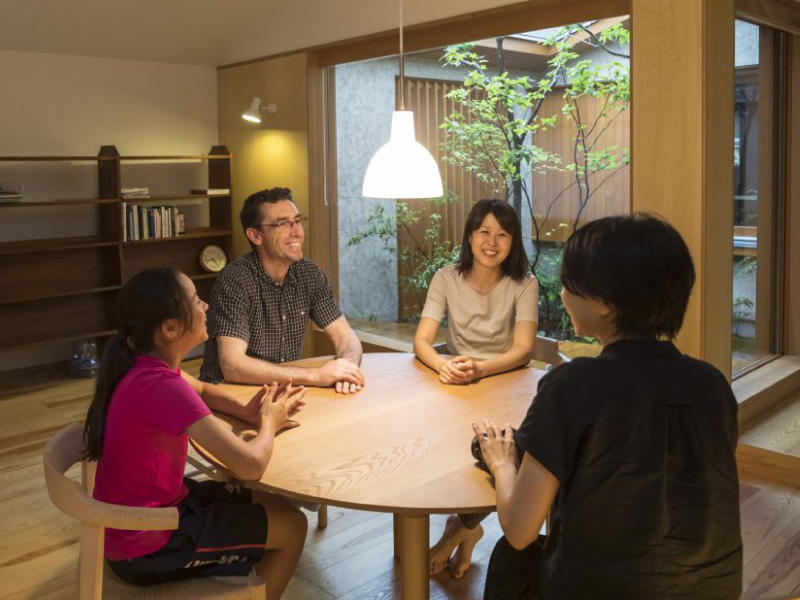 ご主人 たとえばダイニングから、中庭越しに子どもたちの様子が見える。家の中のどこにいても家族がいつも一緒にいる感覚があって、安心しますね。