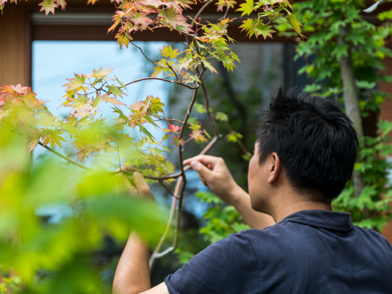 奥様 いえいえ、全然。でも、実は家を建ててから主人にはもっと大きな変化があって、庭の手入れが趣味になったんです!以前は「グリーンて何?」っていうタイプだったのに、人は住まいで変わるんだなあと(笑)。今や、主人の朝は庭木の水やりか、子どもの遊び相手のどちらかから始まります。そうそう、先日、家族で多治見市の陶器まつりに出かけた時も「庭のもみじを飾る一輪挿しがほしい」と言うので、びっくりしました。